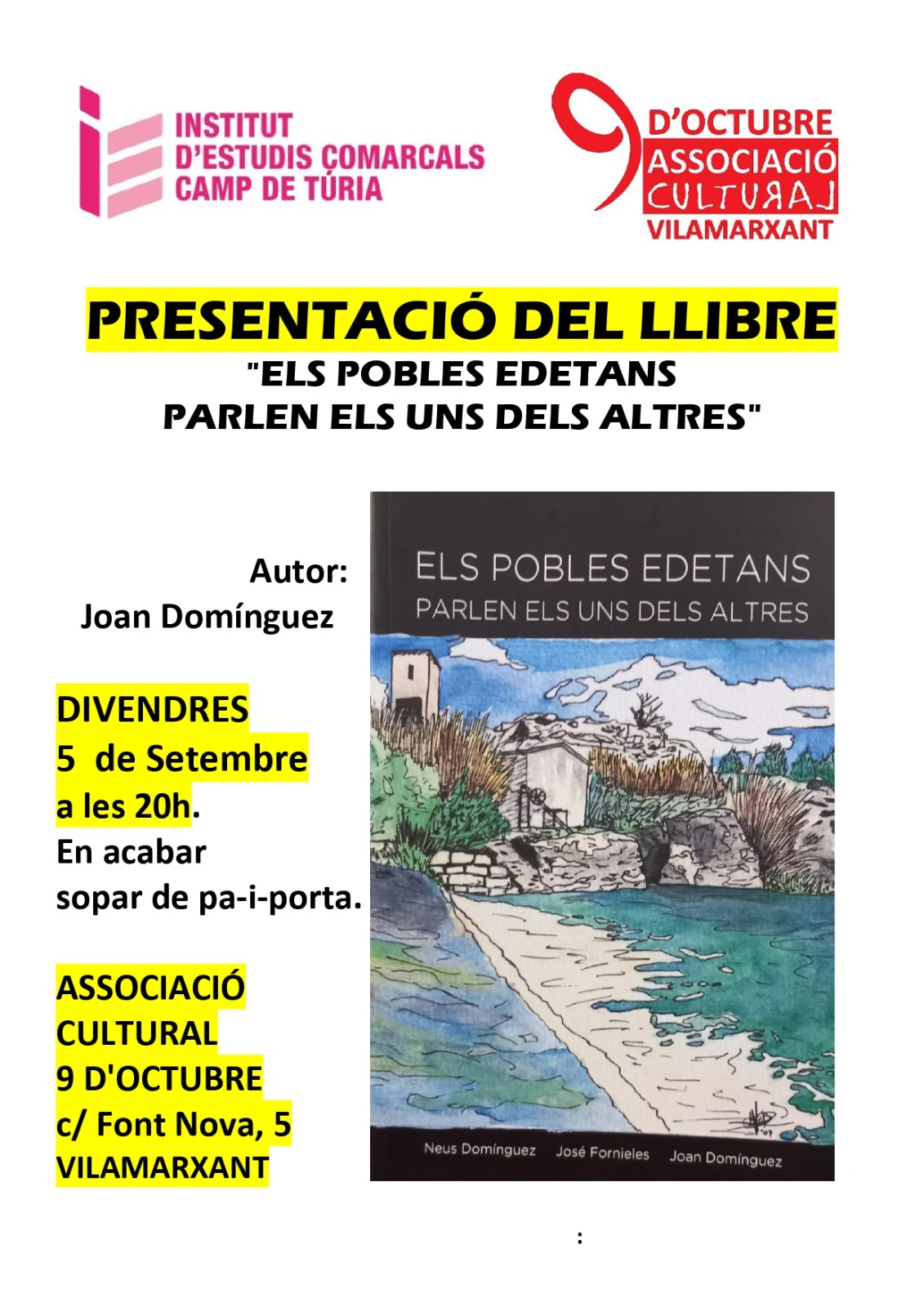 Presentació del llibre “Els pobles edetans parlen els uns dels altres” , de Neus Domínguez, Joan Fornieles i Joan Domínguez.