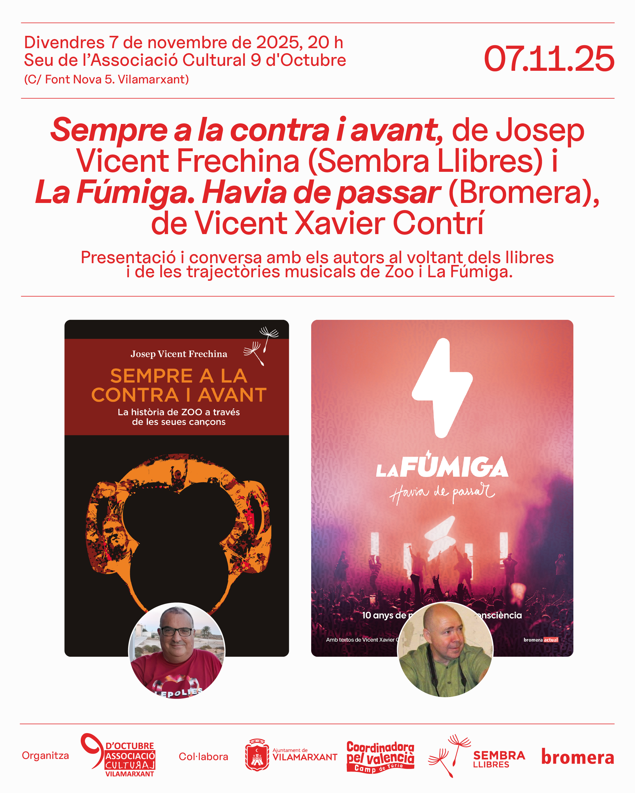 Sempre a la contra i avant, de Josep Vicent Frechina (Sembra Llibres) i La Fúmiga. Havia de passar (Bromera), de Vicent Xavier Contrí
